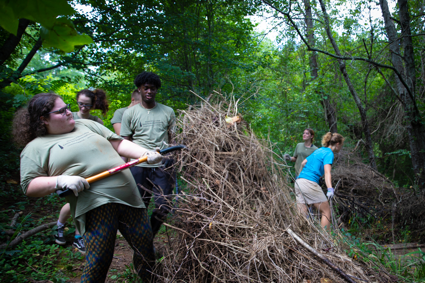 Collectively, Warren Wilson students, faculty, and staff worked a total of 1,380 hours weeding, mulching, picking up trash, clearing brush, creating pathways, digging silt fences, painting, gardening, landscaping, planting trees and other work.