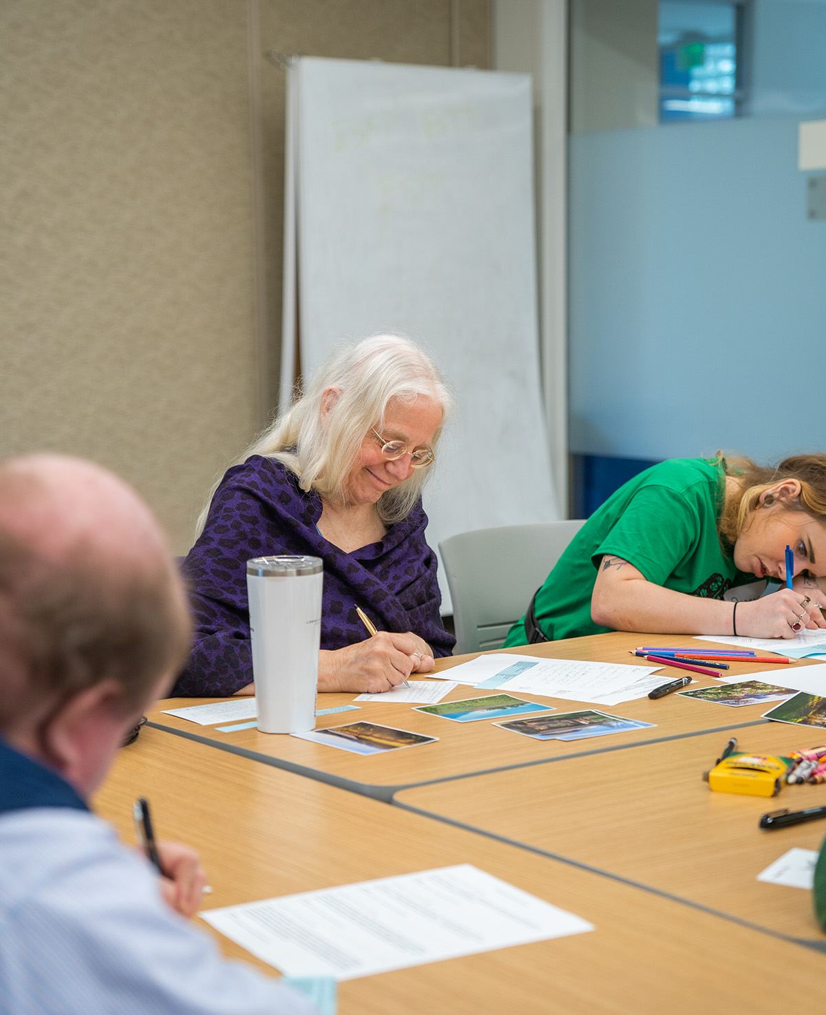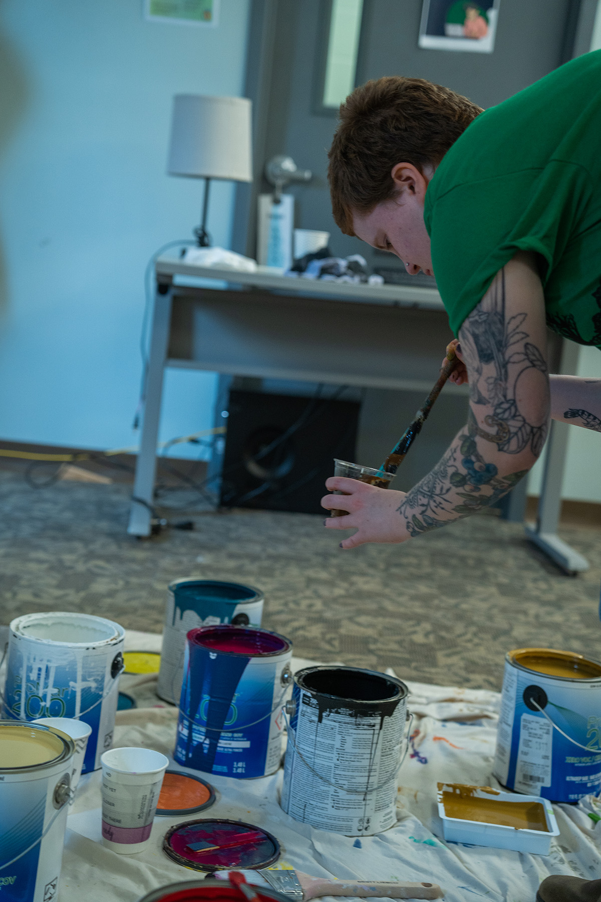 This Work Day, participants tackled 16 projects today including cleaning up two miles of the River Trail, working on the dye garden, clearing land for an art garden installation, washing windows, cataloging a library collection, and painting a mural.
