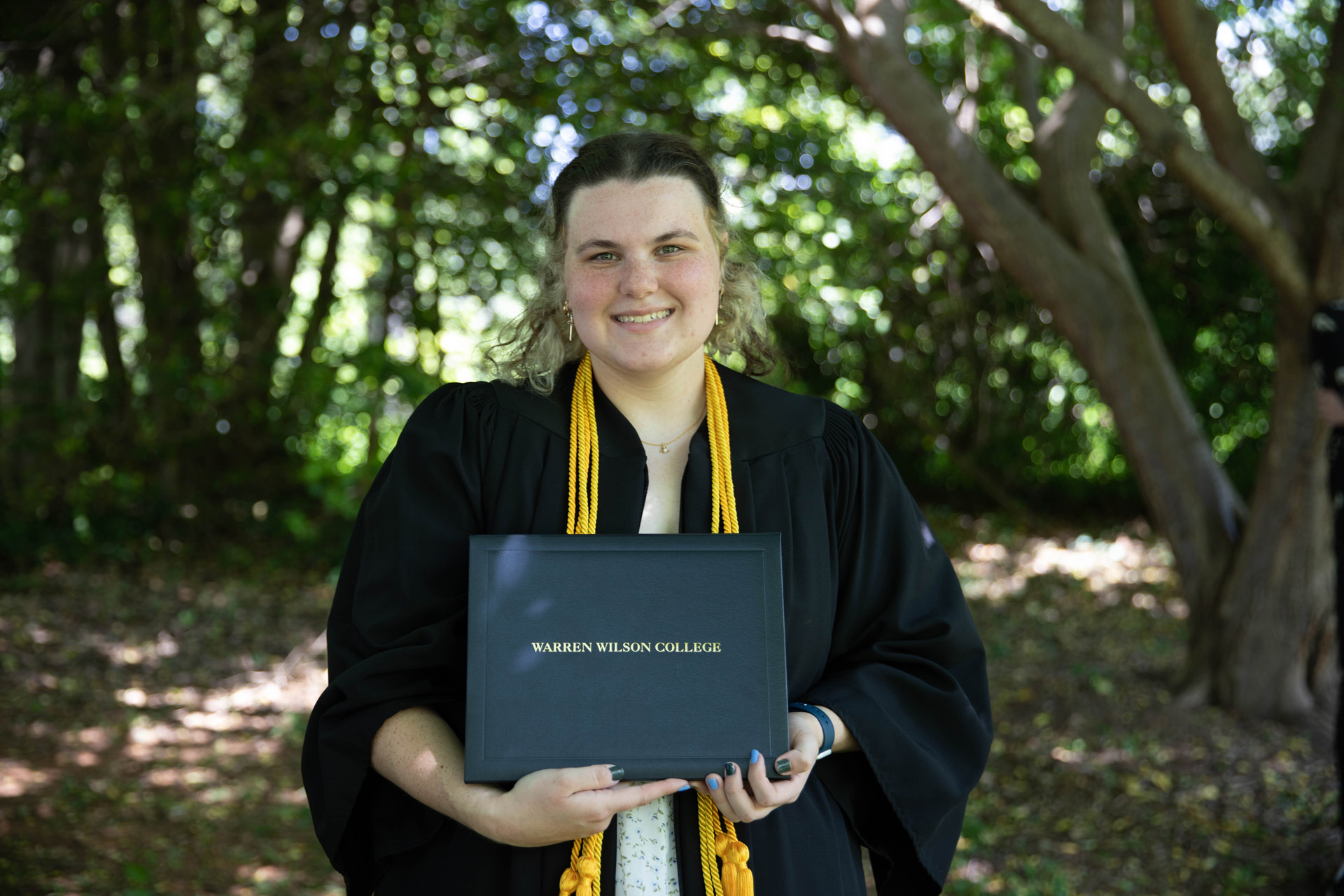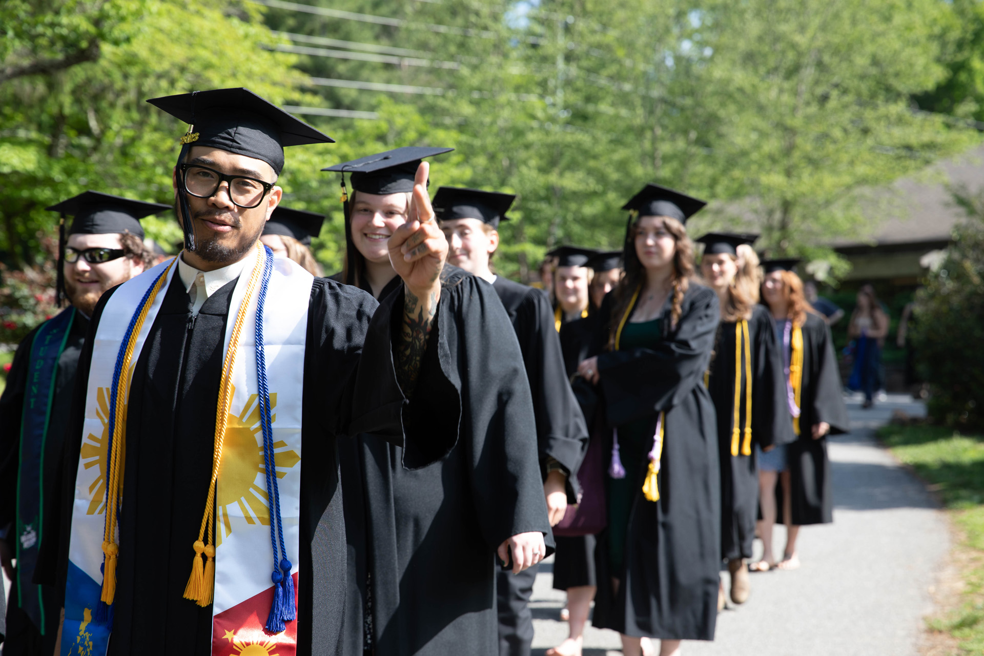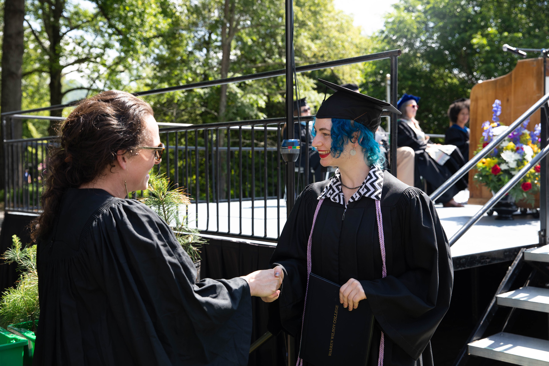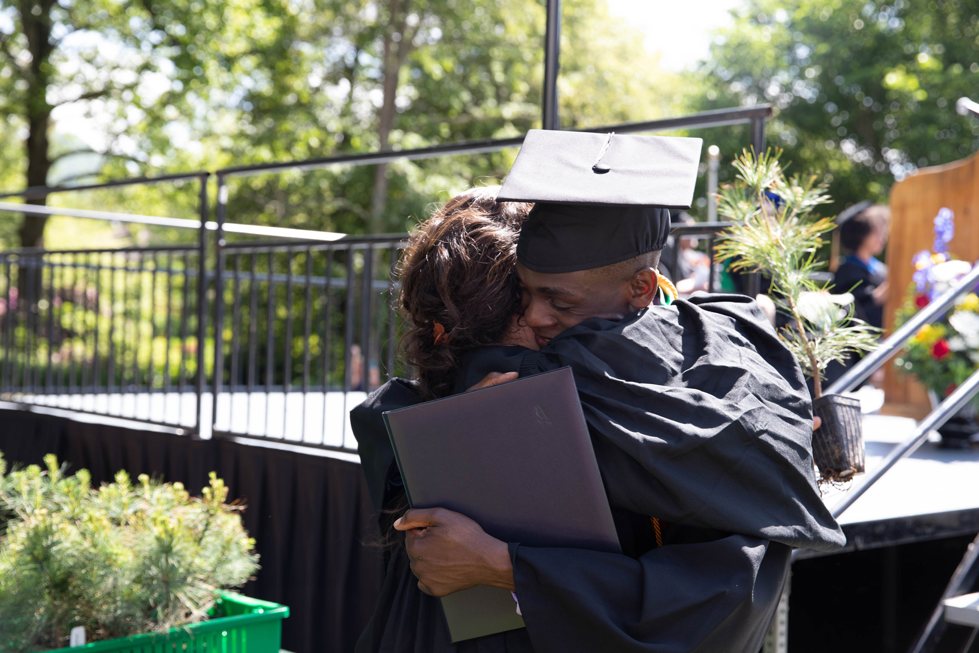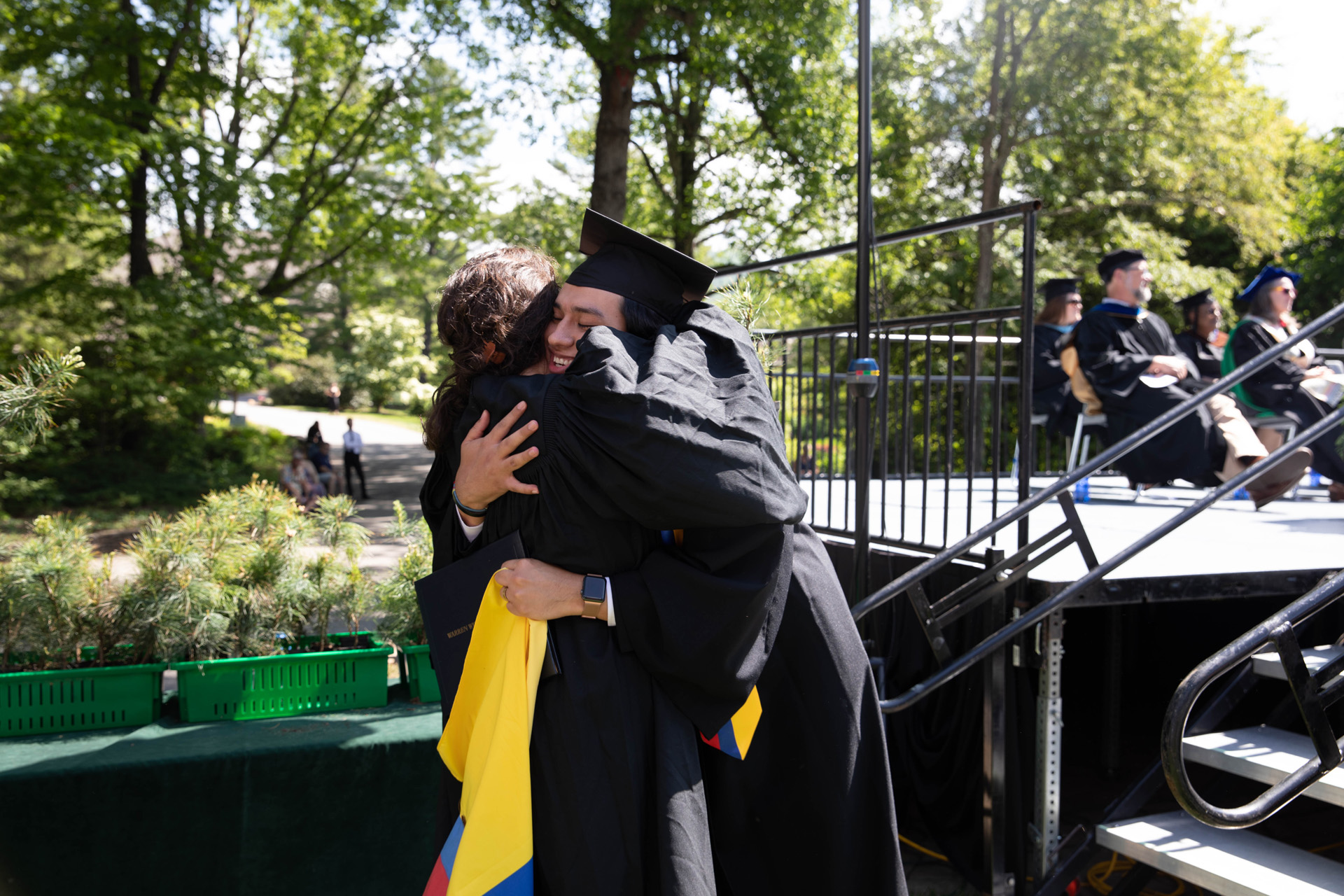 As they walked across the stage, the students received white pine tree saplings. A Warren Wilson tradition, the sapling represents the part of Warren Wilson that each graduate will take with them. Just as each graduate leaves the college to go, lay down roots, and grow, the graduate is encouraged to plant the tree away from campus to represent their mark as a Warren Wilson graduate in the greater world.