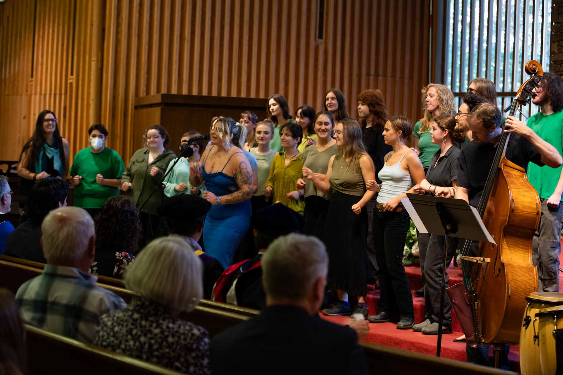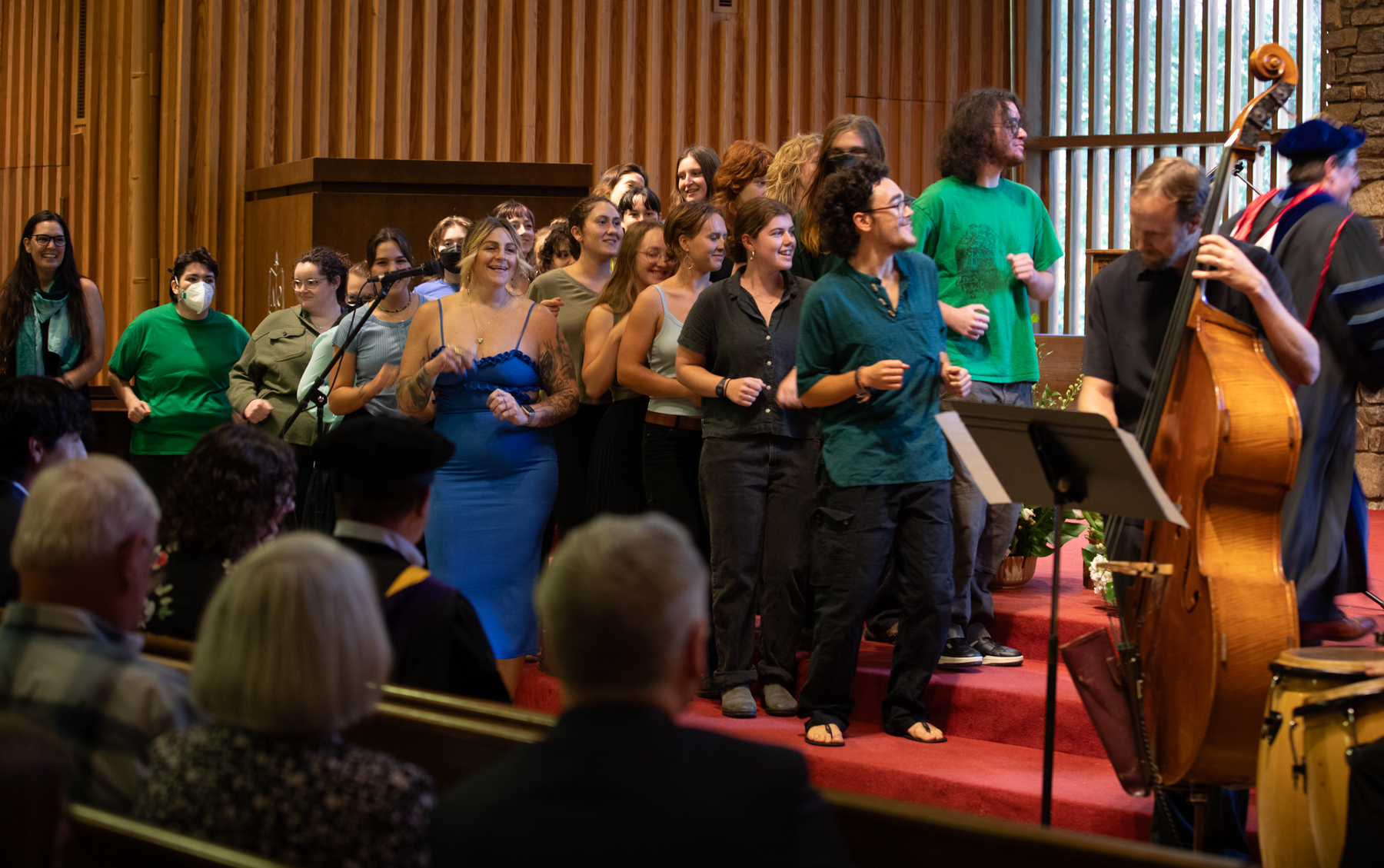 The event ended with “Quimbara,” a song by Celia Cruz and Johnny Pacheco that was sung by guest musician Cynthia McDermott. The Warren Wilson College choir, along with faculty and students, salsa danced to the song during the recessional.