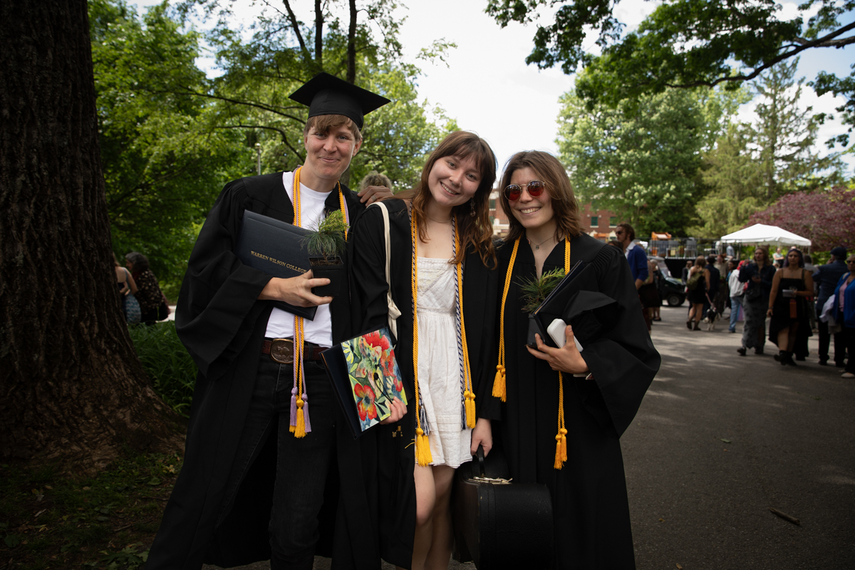 As they walked across the stage, the students received white pine tree saplings. A Warren Wilson tradition, the sapling represents the part of Warren Wilson that each graduate will take with them. Just as each graduate leaves the college to go, lay down roots, and grow, the graduate is encouraged to plant the tree away from campus to represent their mark as a Warren Wilson graduate in the greater world.