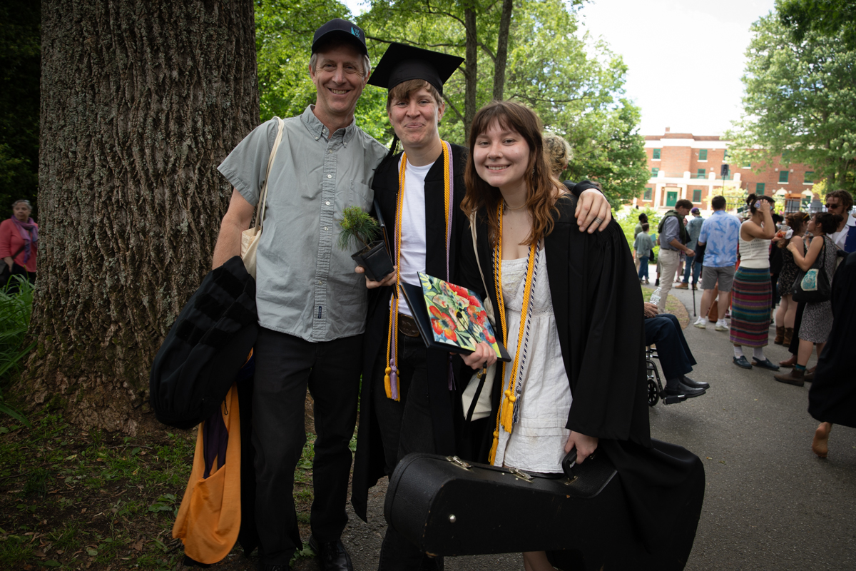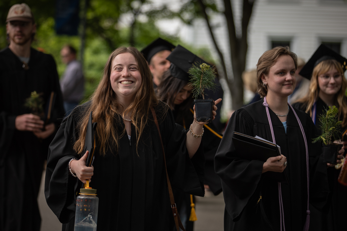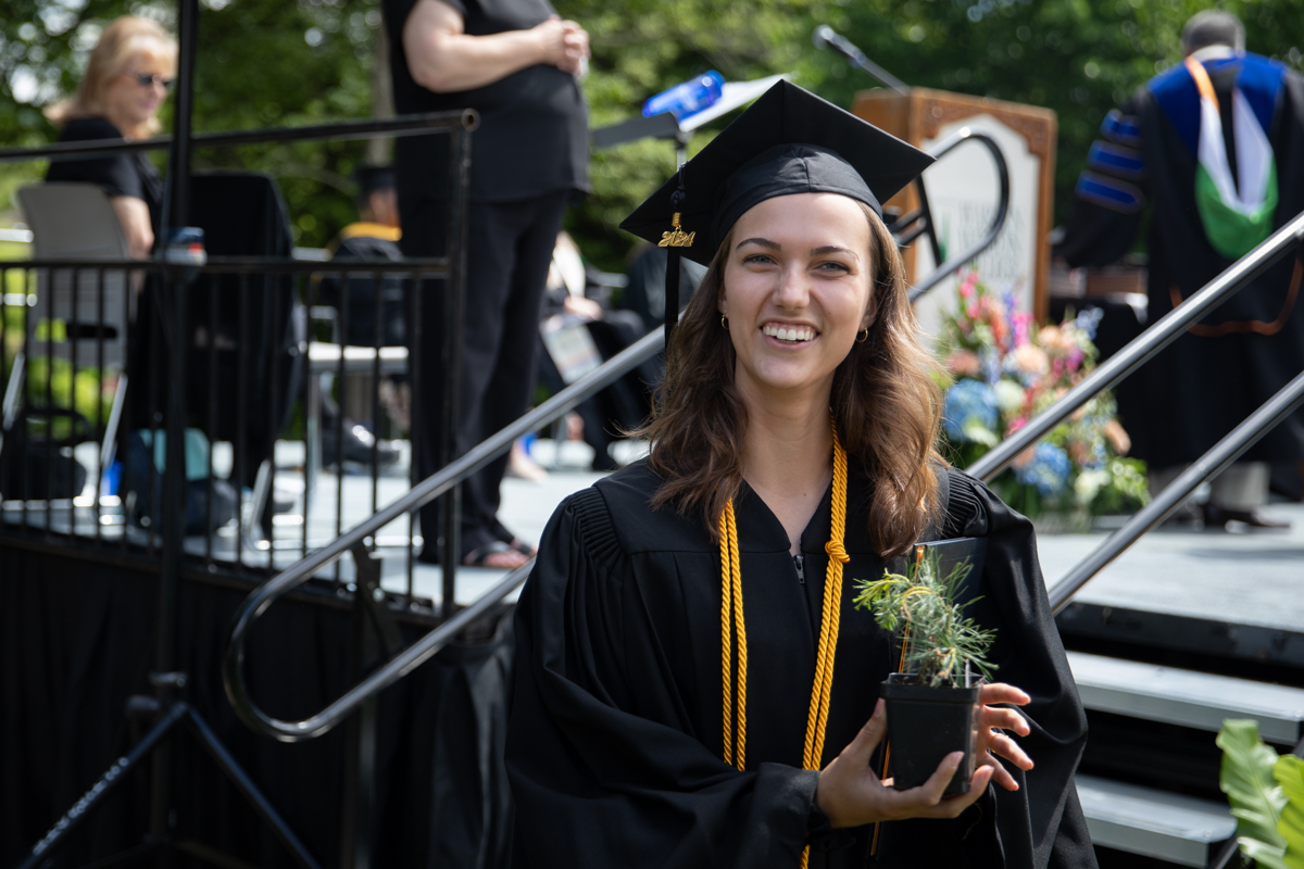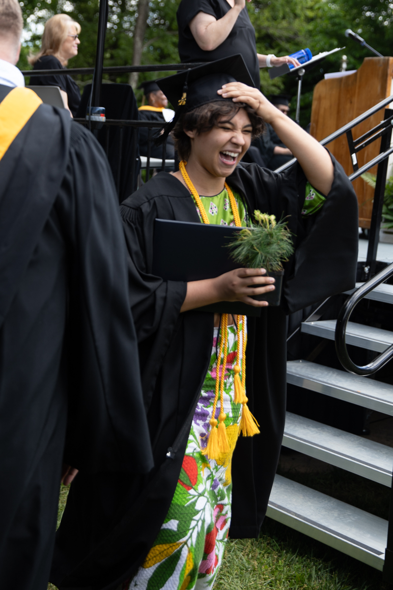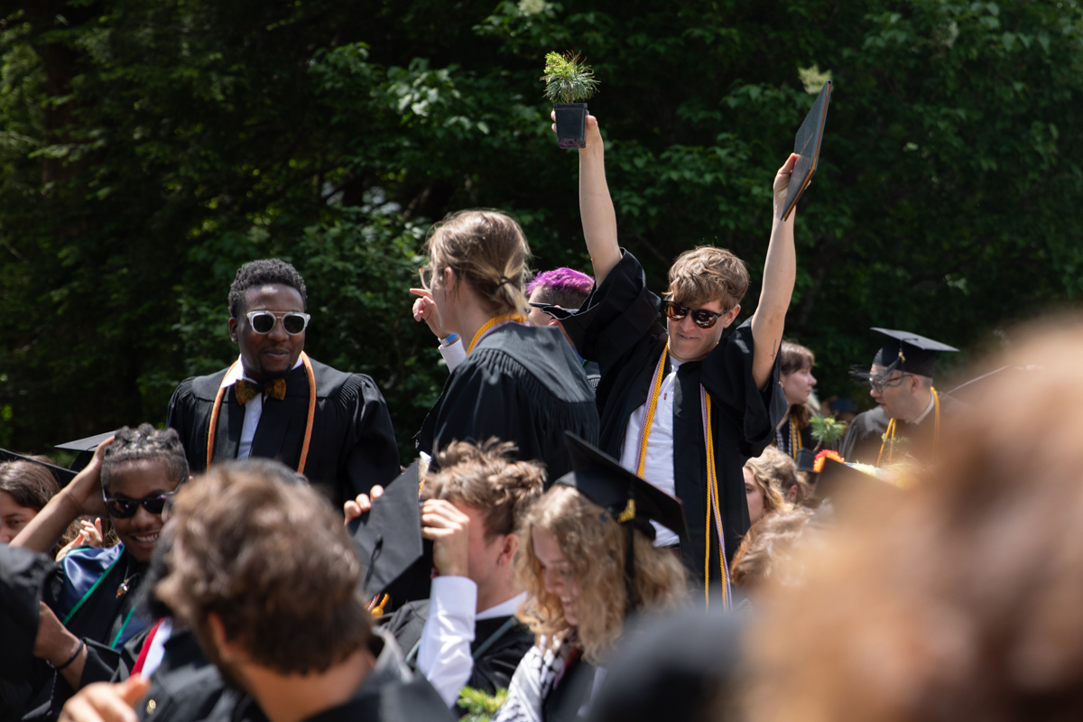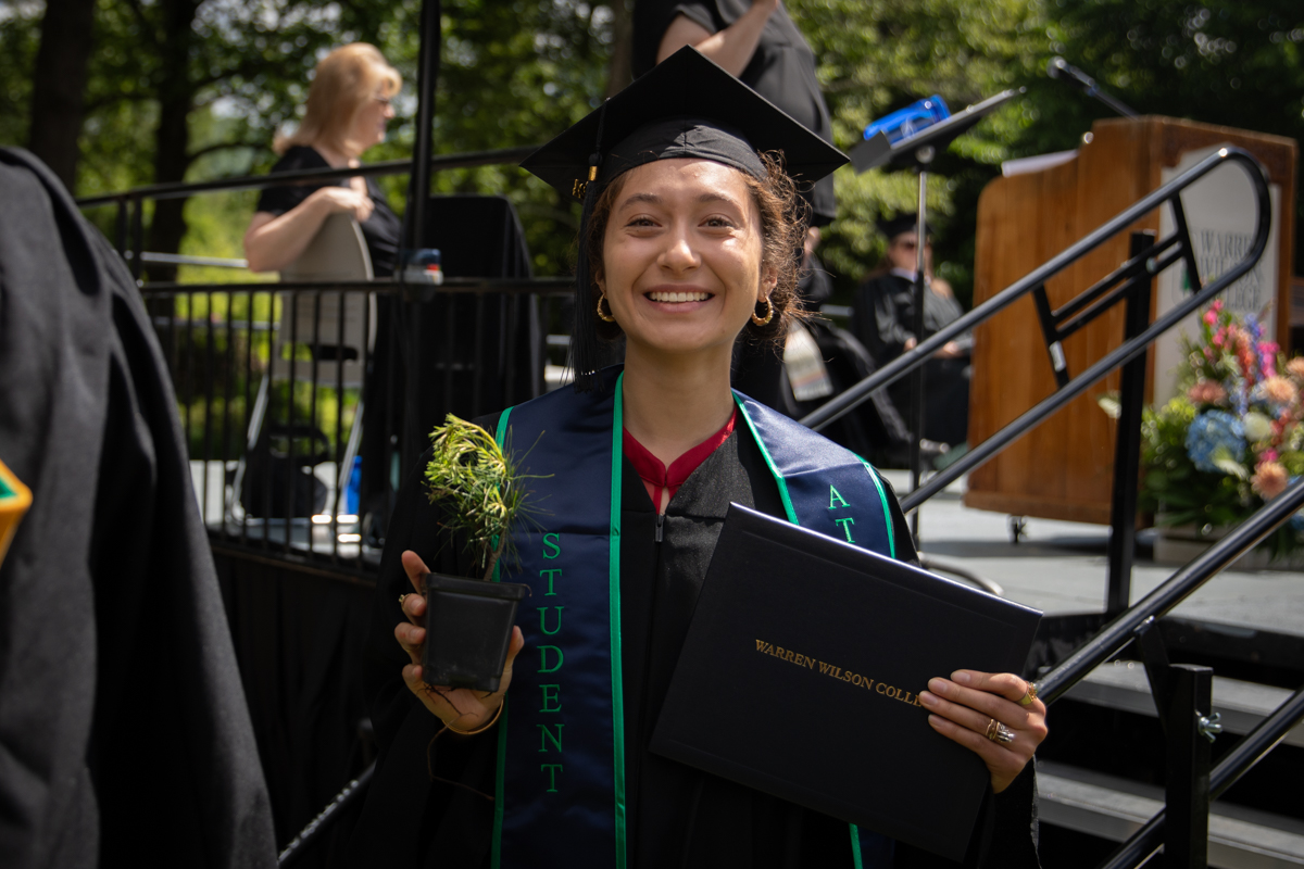 As they walked across the stage, the students received white pine tree saplings. A Warren Wilson tradition, the sapling represents the part of Warren Wilson that each graduate will take with them. Just as each graduate leaves the college to go, lay down roots, and grow, the graduate is encouraged to plant the tree away from campus to represent their mark as a Warren Wilson graduate in the greater world.