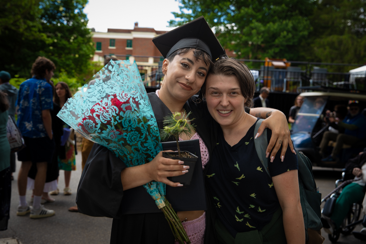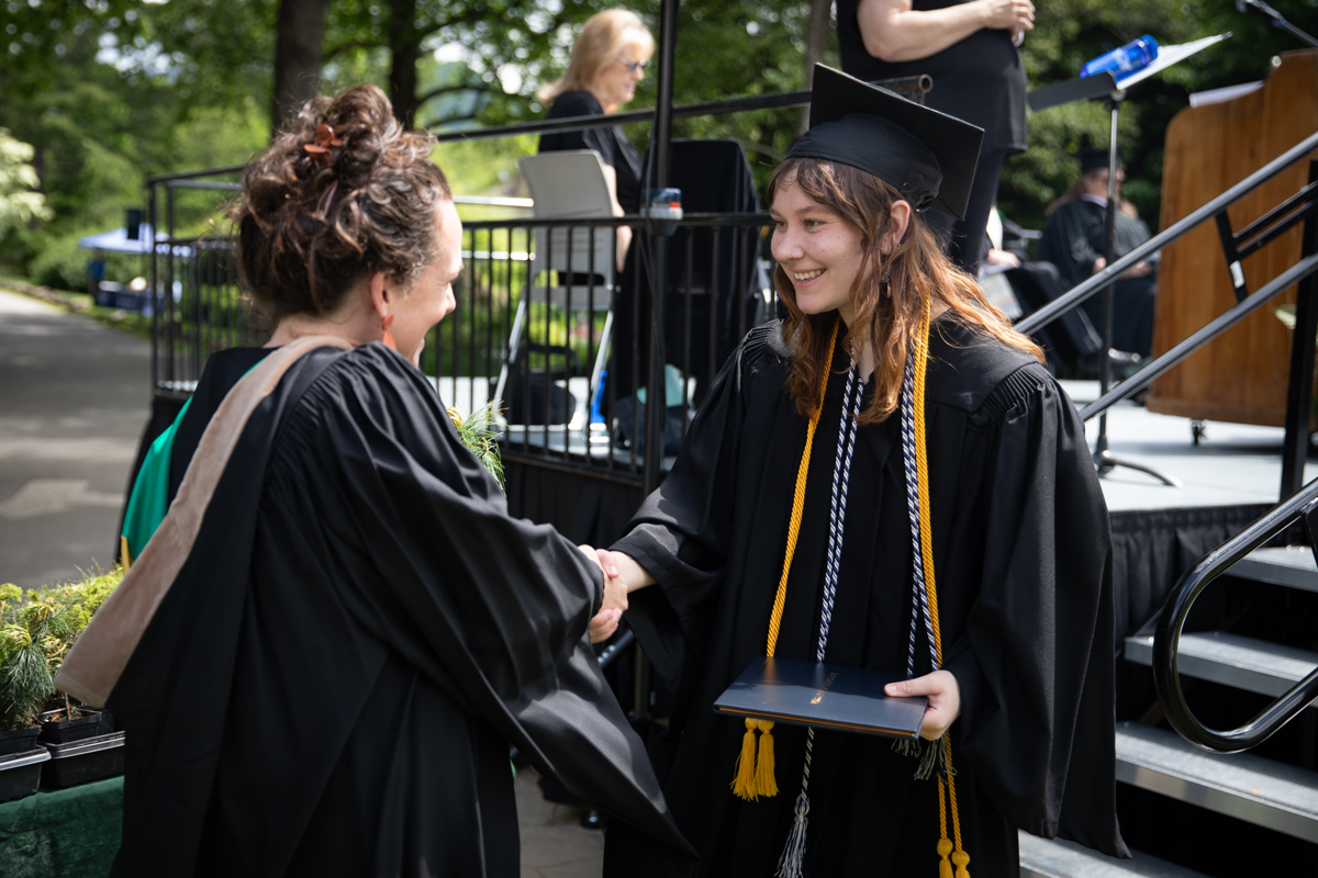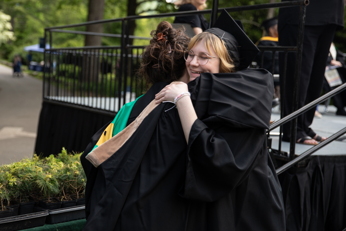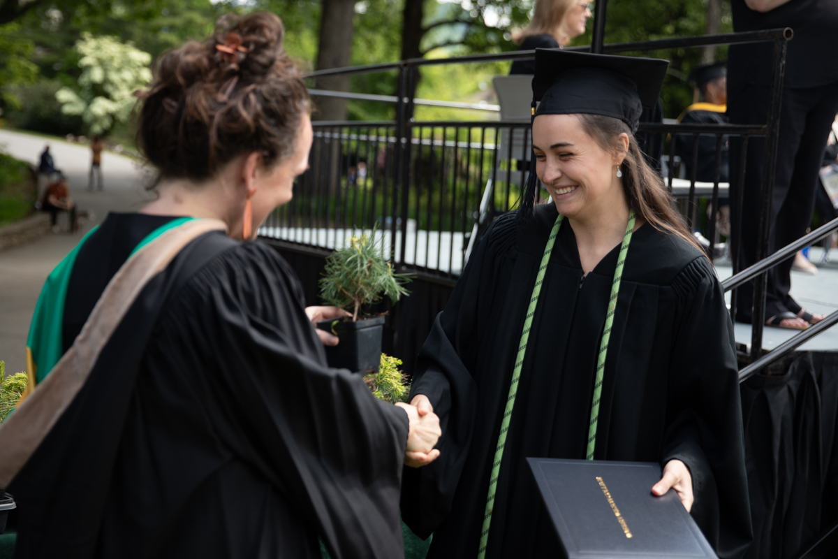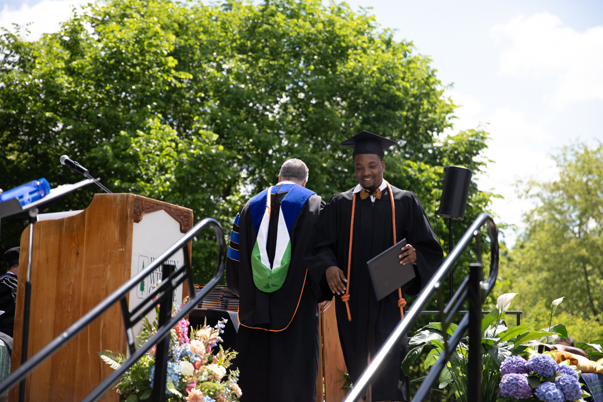 As they walked across the stage, the students received white pine tree saplings. A Warren Wilson tradition, the sapling represents the part of Warren Wilson that each graduate will take with them. Just as each graduate leaves the college to go, lay down roots, and grow, the graduate is encouraged to plant the tree away from campus to represent their mark as a Warren Wilson graduate in the greater world.