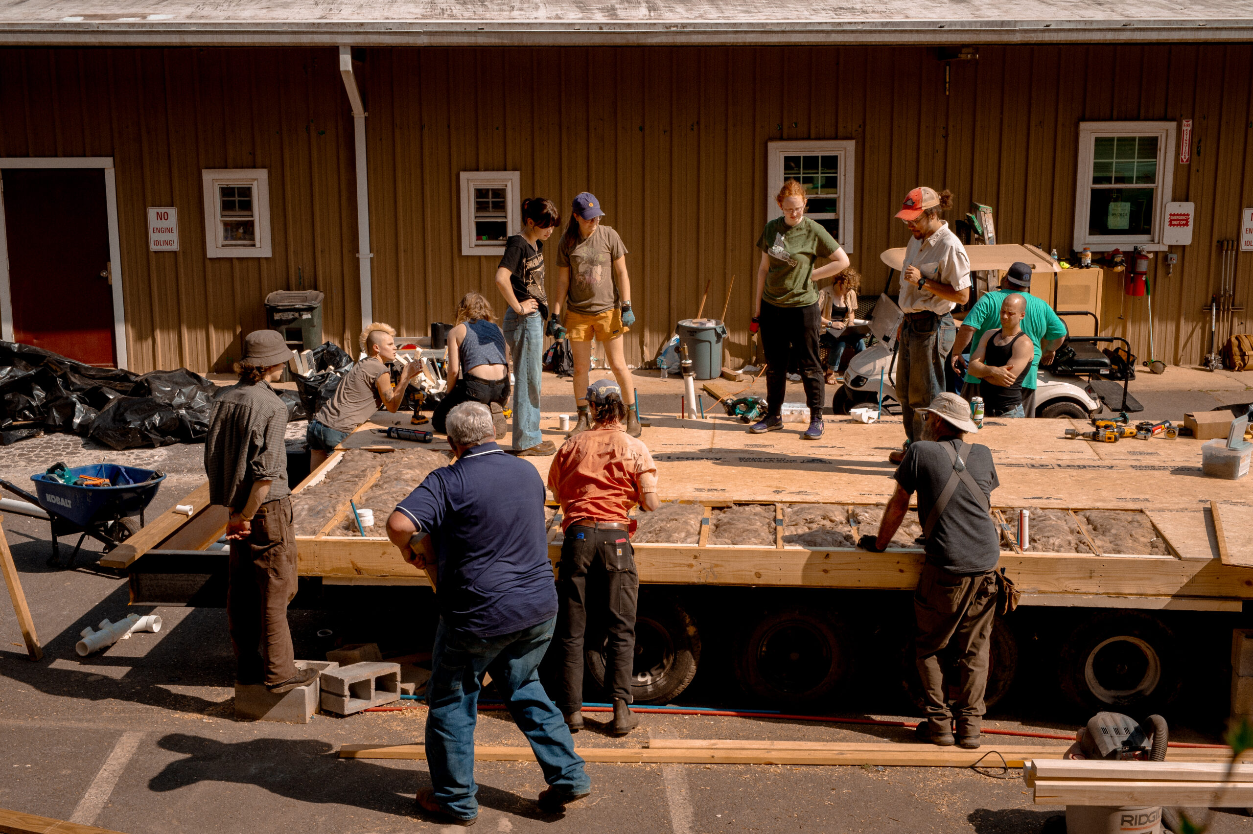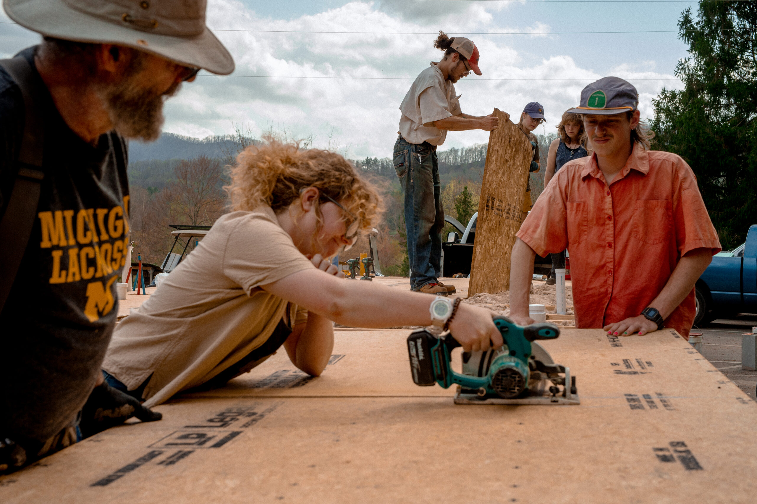Sophomore Maeve Williams, an Environmental Studies major and student leader on the College’s Construction Crew, first proposed the project in September 2024 as a way to train new student workers through real, hands-on experience. But everything changed when the hurricane hit that fall, devastating parts of the Swannanoa Valley and displacing local residents