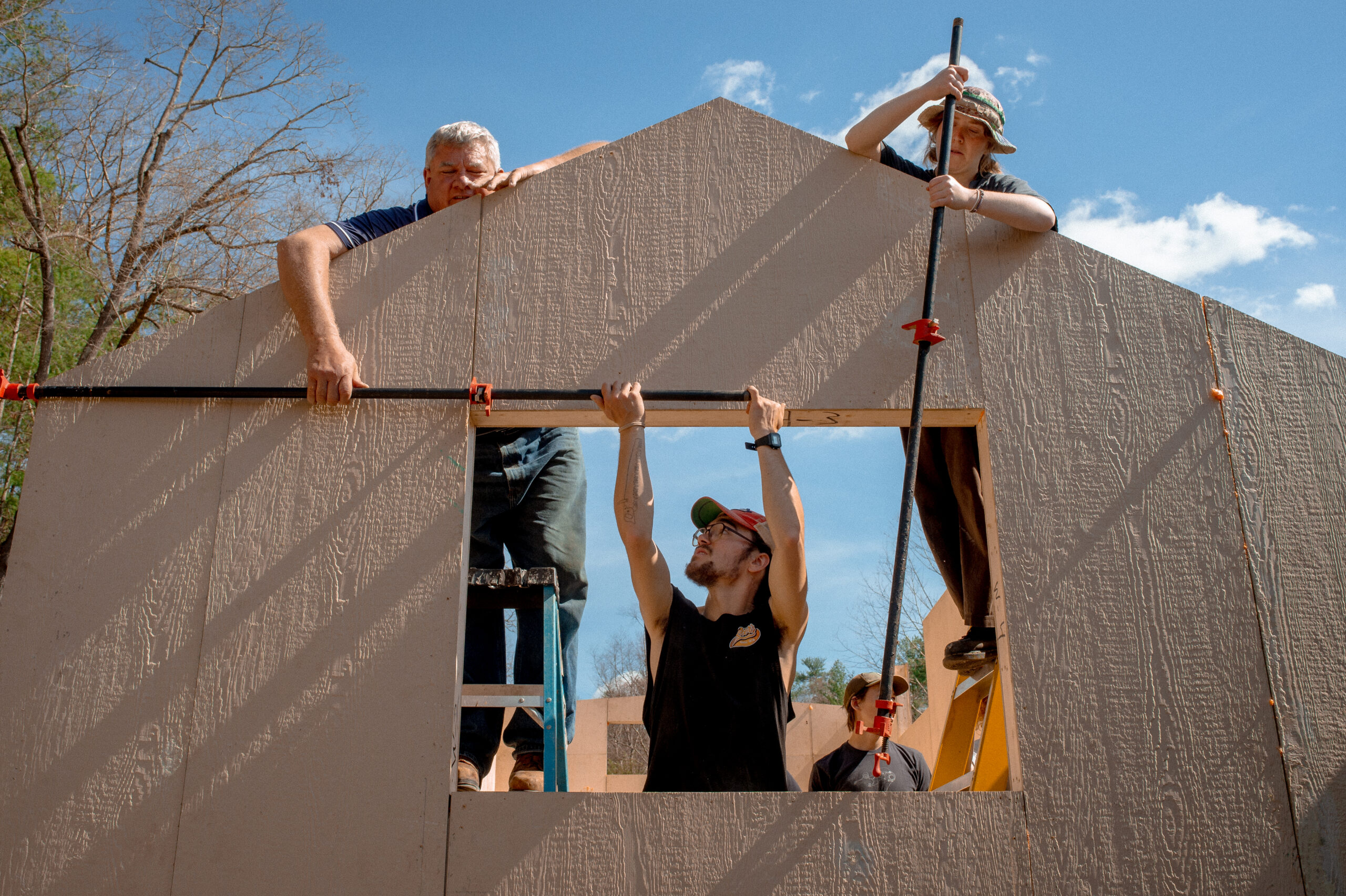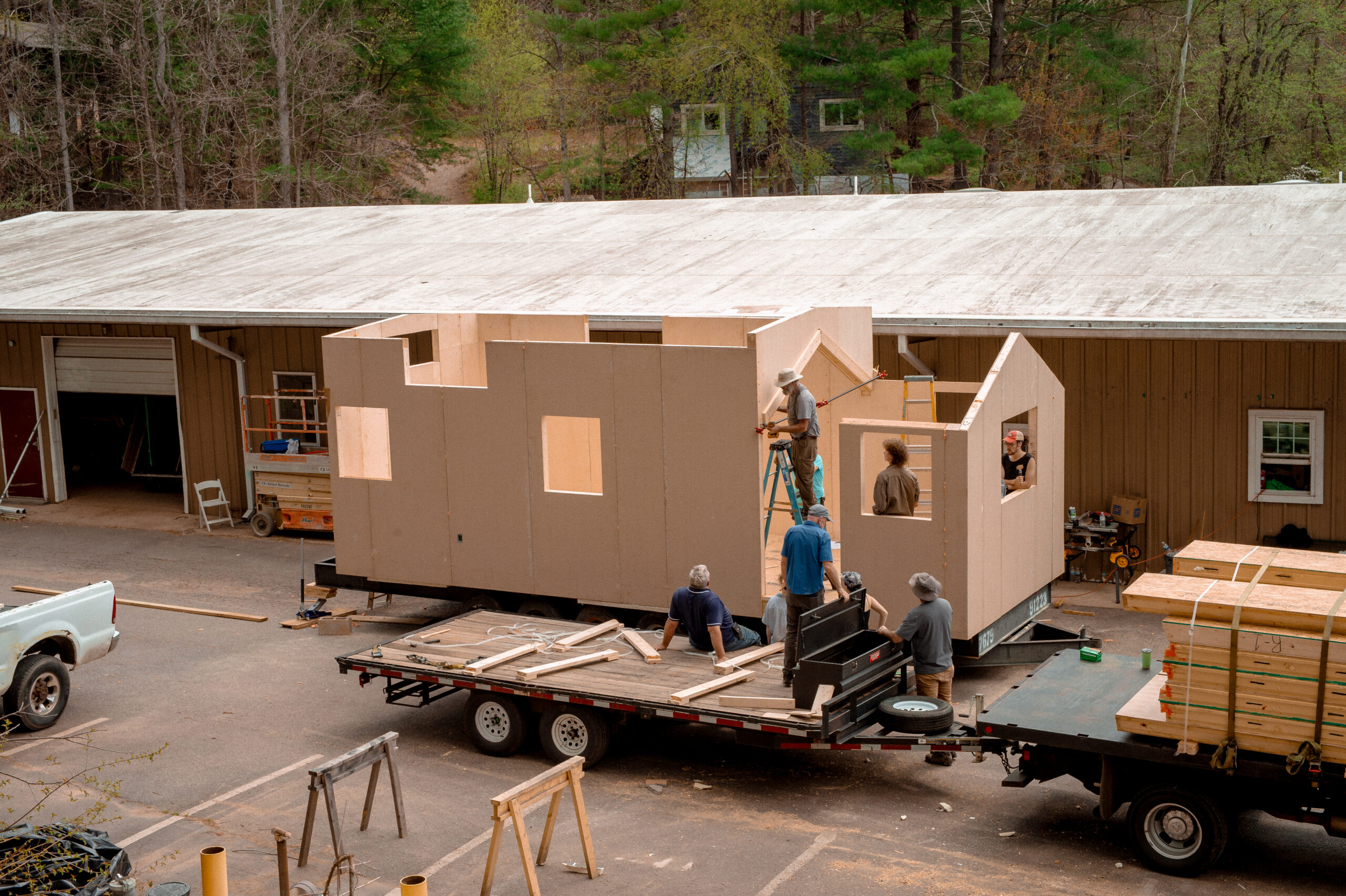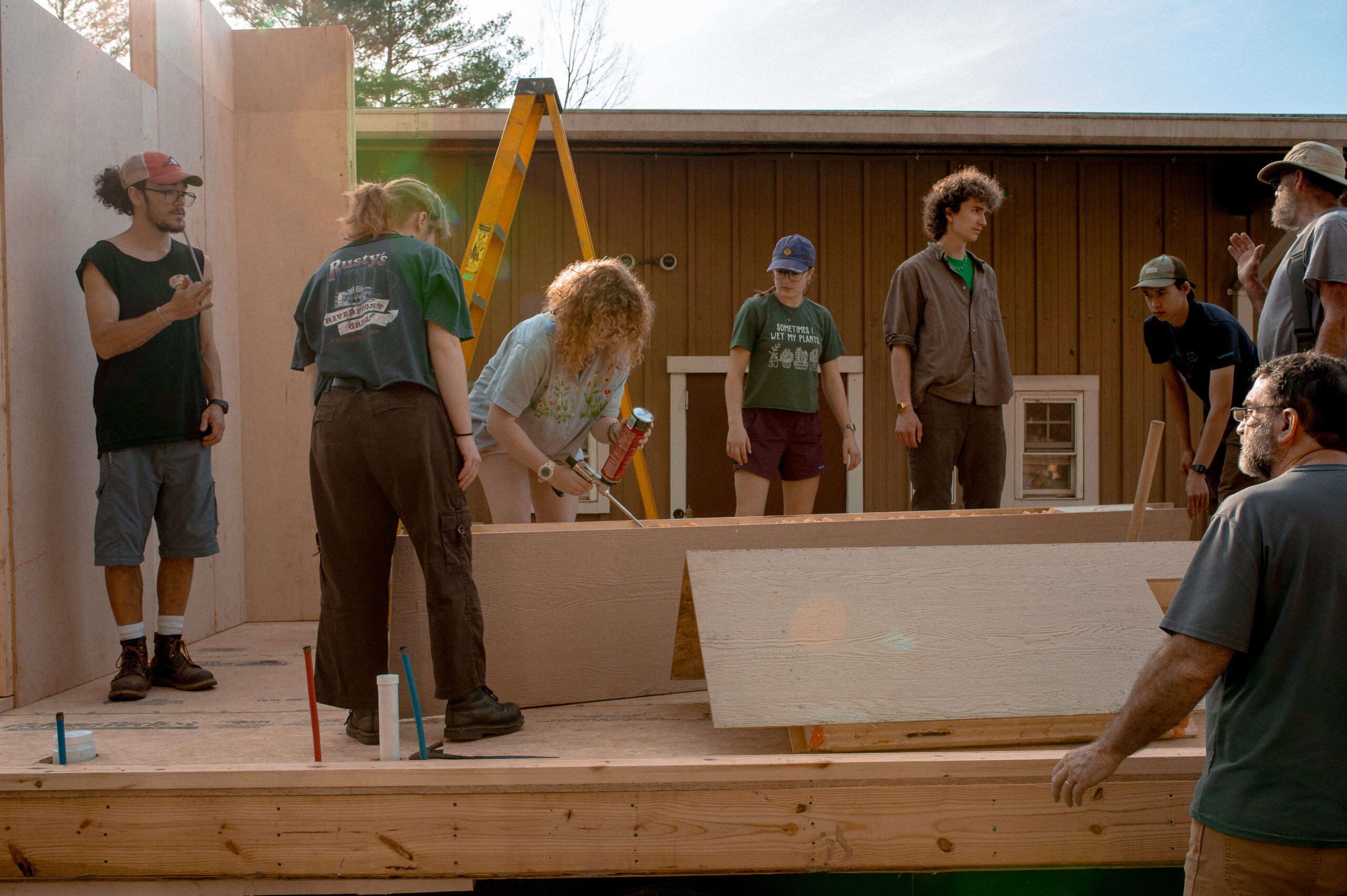 The Construction Crew at Warren Wilson College is one of many student work crews on campus, part of the College’s distinctive work program that integrates hands-on work into the educational experience. Students on the crew typically work on building renovations, roofing, door repairs, and dorm maintenance. This tiny home project expanded their scope—and their sense of purpose.