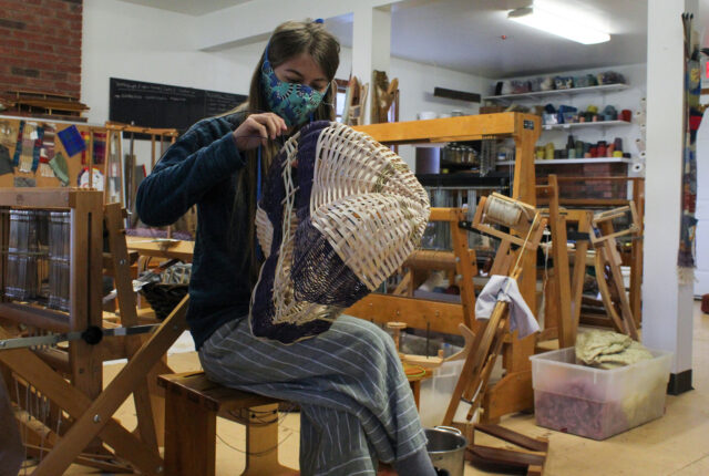 Through organized production goals that focus on quality, design and sustainability, students develop an understanding of the material while making products that can be enjoyed by the community. There are opportunities on the Crew to learn other fiber skills such as spinning, felting, sewing, dyeing, and basketry. All of these learned skills can be applied to other areas of academic study as well as community engagement.